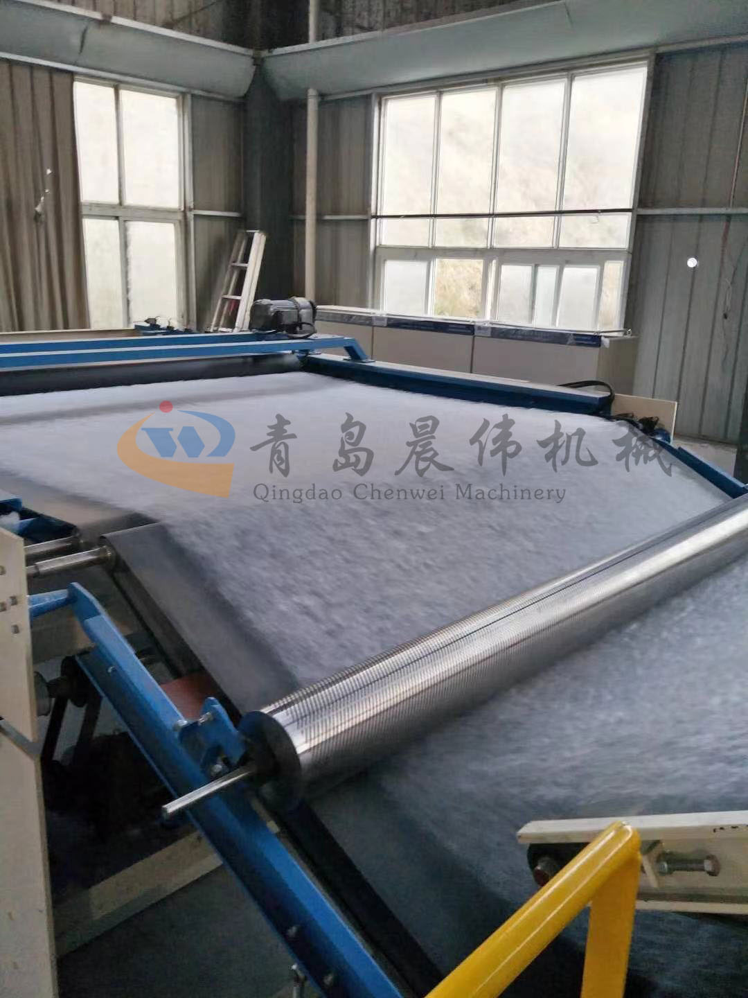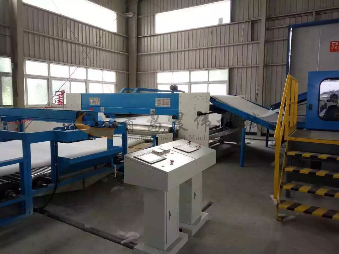 5. CWPW-鋪網(wǎng)機(jī):用于將梳理纖網(wǎng)通過(guò)移動(dòng)小車交叉折疊為所需幅寬和定量的多層纖網(wǎng),以供后道工序使用。鋪網(wǎng)輥采用特殊結(jié)構(gòu),加裝壓網(wǎng)輥和導(dǎo)流板,不飄網(wǎng)不起皺,五只大功率電機(jī)精確控制各部件的運(yùn)動(dòng),電動(dòng)輸出簾高度調(diào)節(jié)裝置