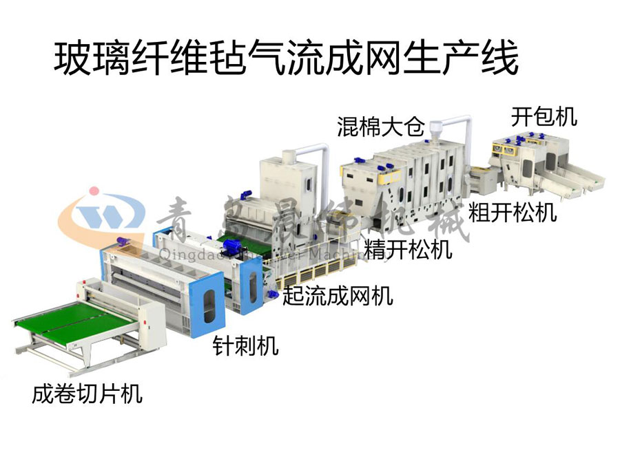 該生產(chǎn)線用于生產(chǎn)玻璃纖維針刺氈。