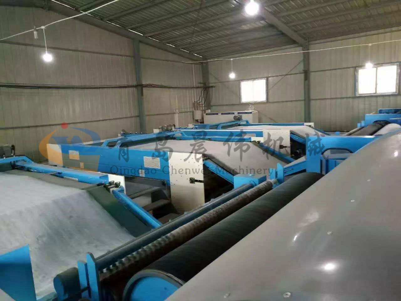 開包機-開松機-振動給棉機-梳理機-鋪網(wǎng)機-烘房-燙光機-成卷切片機