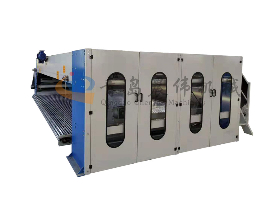 4.夾持式防靜電喂入簾,往復換向運轉(zhuǎn)平穩(wěn),纖網(wǎng)厚薄均勻,輸出簾升降調(diào)節(jié)方便。
